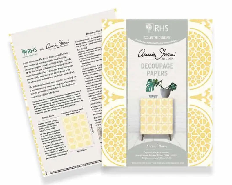 All the papers from the Annie Sloan with Royal Horticultural Society collaboration including the geometric designs and the flora and fauna have been printed on dyed tissue papers. They have been designed to work best with Chalk Paint and Annie Sloan Image Medium.