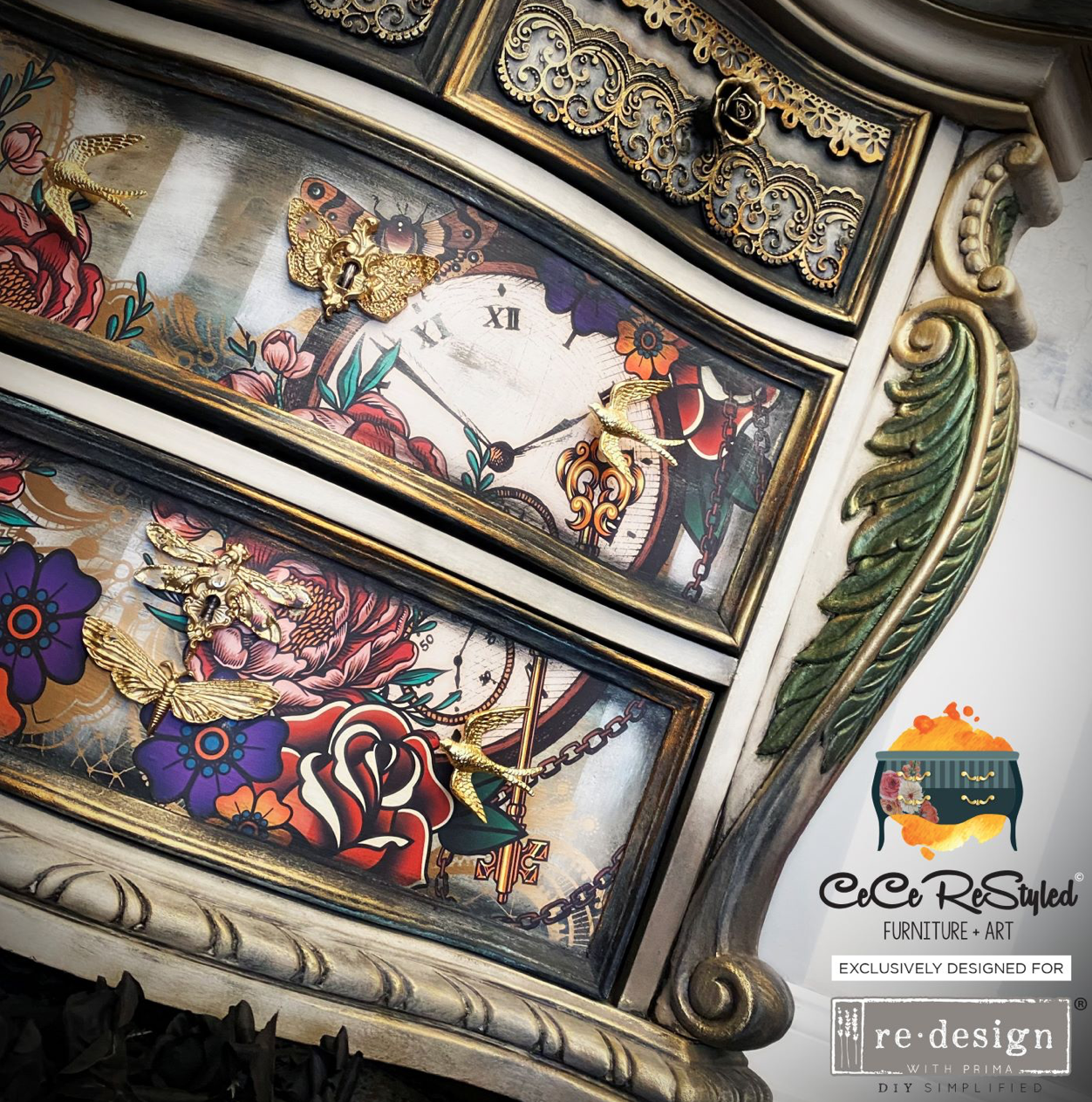 Re-Design with Prima transfers can be used on furniture, glass, walls and much more.