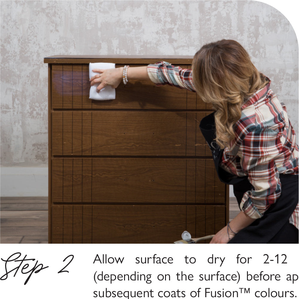 You can apply Ultra Grip™ using a brush, a roller, an applicator pad, or a sponge. No matter what you apply with, be aware that Ultra Grip™ will hold texture and that texture can show through to the final layer of Fusion Mineral Paint. To avoid this, ensure you apply Ultra Grip™ in a very thin layer. The product is milky in the bottle, but should be clear when applied. Let it dry 12-24 hours before painting for best results, but you can paint after 2 hours of application.
