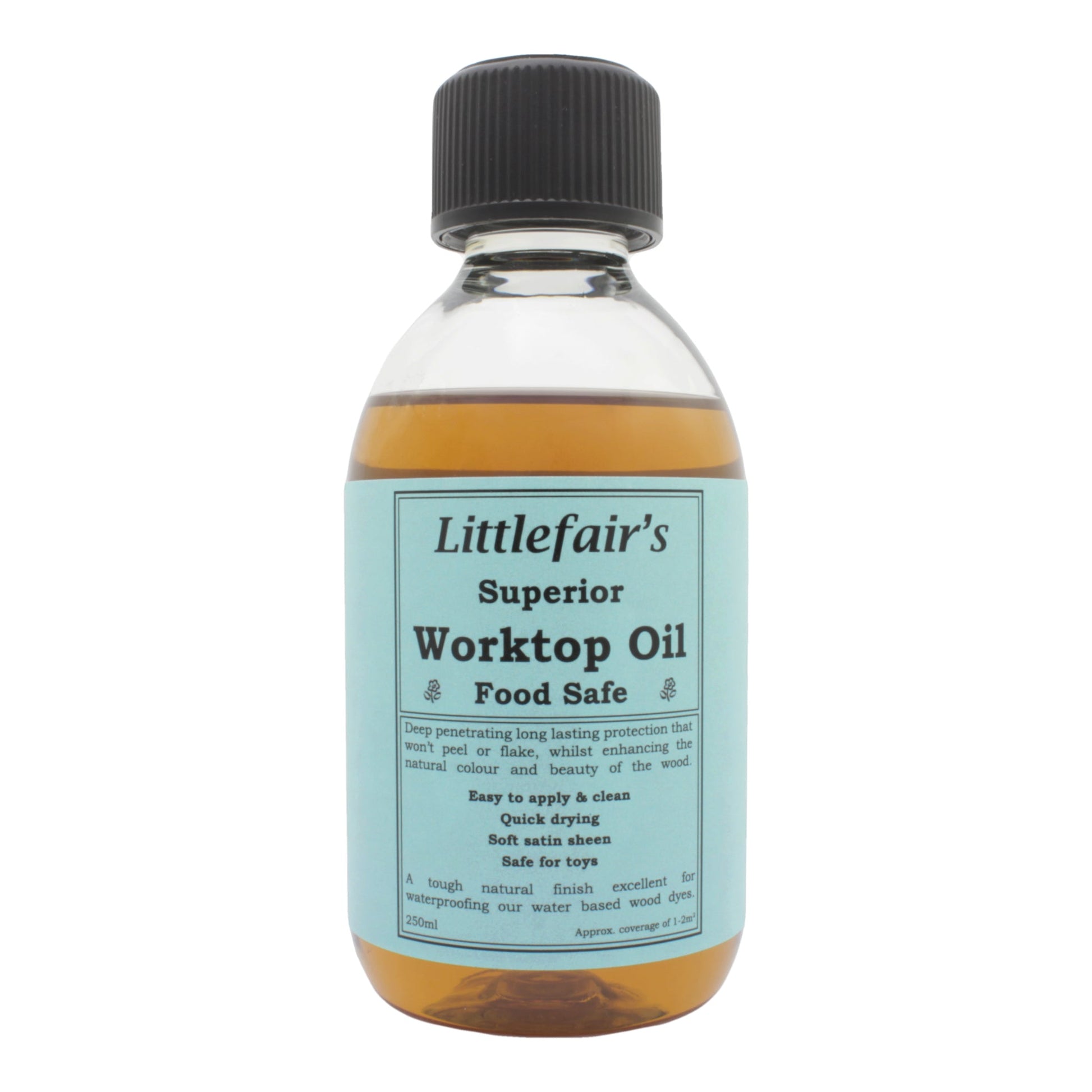 Littlefair’s Superior Worktop Oil will provide a deep penetrating long lasting protection that won’t peel or flake, whilst enhancing the natural colour and beauty of the wood. This oil has a tough natural finish which is excellent for waterproofing our Water Based Wood Dyes.